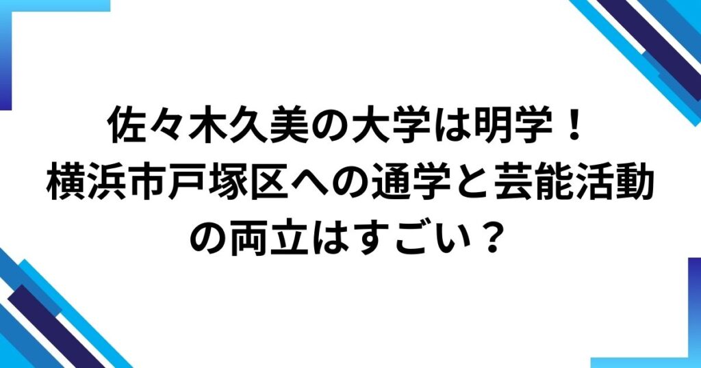 佐々木久美の大学は明学!横浜市戸塚区への通学と芸能活動の両立はすごい?