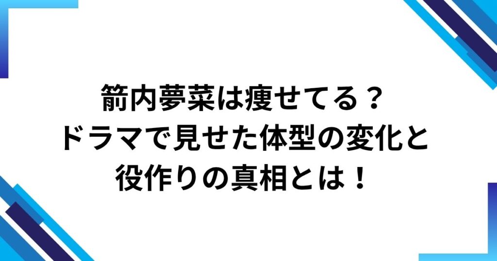 女優として数々のドラマや映画で活躍している箭内夢菜さん。 そんな箭内夢菜さんですが、最近のドラマ出演で「痩せた?」という声が多く上がっています。 箭内夢菜さんの体型に変化はあったのでしょうか? 役作りのために体重を調整したのか、それとも自然... -