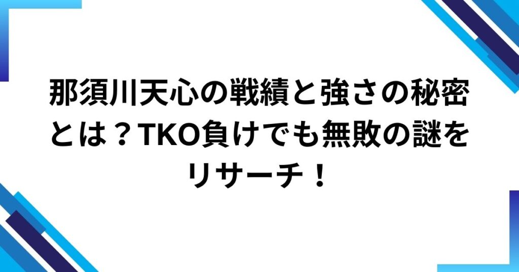 キックボクシング界の神童として知られ、現在はプロボクサーとして活躍する那須川天心選手。 そんな那須川天心選手ですが、メイウェザー戦でTKO負けを喫しながらも「無敗」とされていることをご存知でしょうか? なぜTKO負けがあるのに無敗なのか、不思議... -
