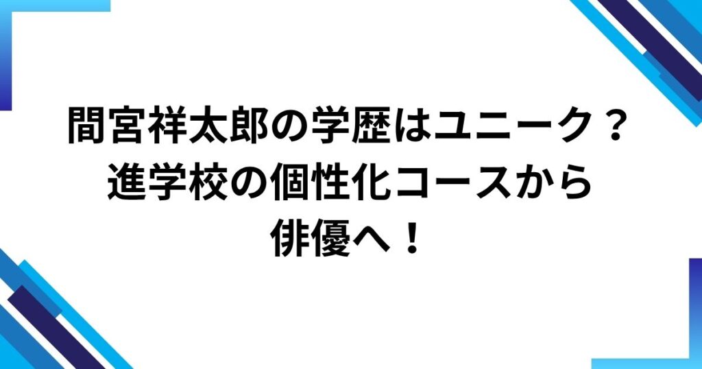 俳優として数々のドラマや映画で活躍している間宮祥太郎さん。 そんな間宮祥太郎さんですが、学歴がユニークで進学校の個性化コースから俳優になったことで話題となっています。 間宮祥太郎さんの学歴はどのようなものなのでしょうか? 進学校の個性化コー... -