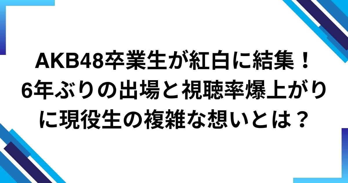AKB48の卒業生が紅白に結集!6年ぶりの出場と視聴率爆上がりに現役生の複雑な想いとは?