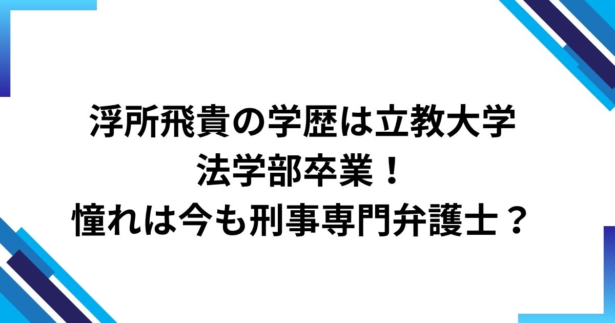 今回は、浮所飛貴さんの学歴と弁護士への憧れについて調べてみました。