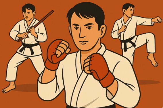 岡田さんは長年にわたり、カリ、ジークンドー、総合格闘技など多様な武術を学んできました。