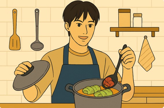 また、得意料理は父から教わったコンソメスープ仕立てのロールキャベツだとか。
