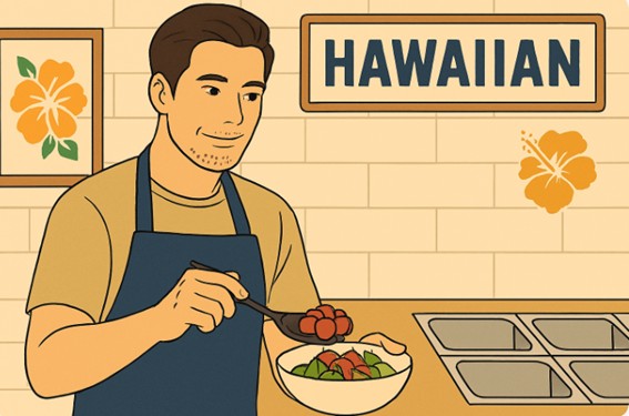 特にハワイ料理のポキを作る姿が「ギャップ萌え」として人気を集めています。