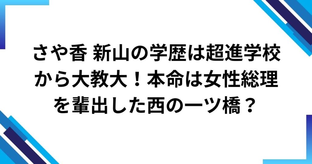 さや香 新山の学歴は超進学校から大教大!本命は女性総理を輩出した西の一ツ橋?