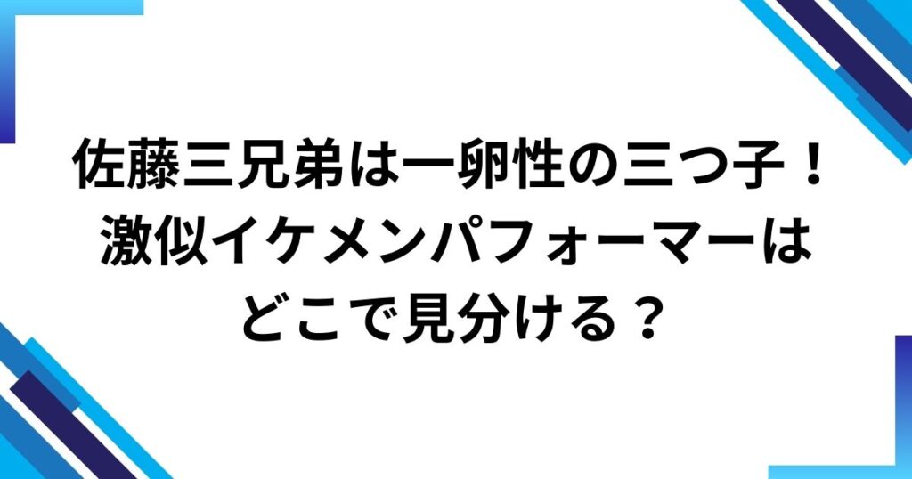 佐藤三兄弟は一卵性の三つ子!激似イケメンパフォーマーはどこで見分ける?