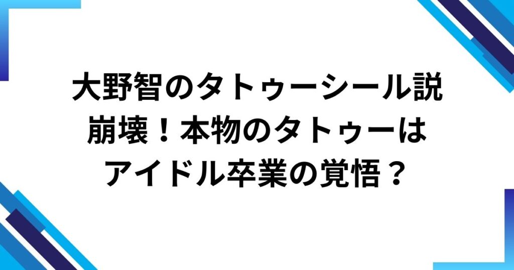嵐の大野智さん(出典:Storm Labes 〔嵐の公式レーベルサイト〕)のタトゥーをめぐる“シール説”が、ついに現実味を失いつつあります。 SNSでは「シールであってほしい」という声が多く見られましたが、その願いは報道内容と写真の一致によって静かに崩れ... -