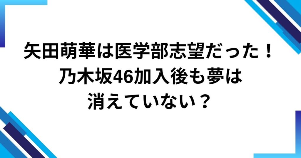 矢田萌華は医学部志望だった!乃木坂46加入後も夢は消えていない?
