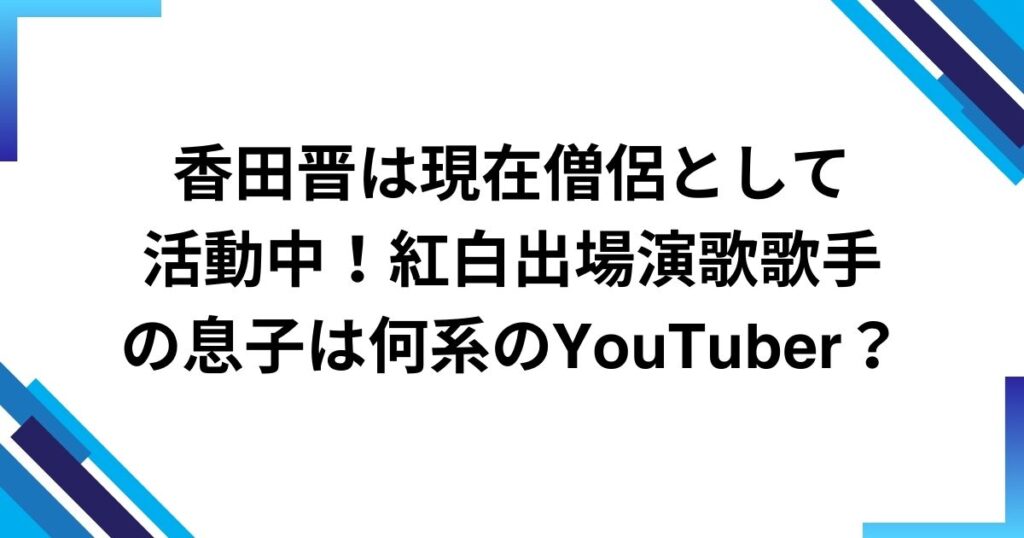 香田晋は現在僧侶として活動中!紅白出場演歌歌手の息子は何系のYouTuber?