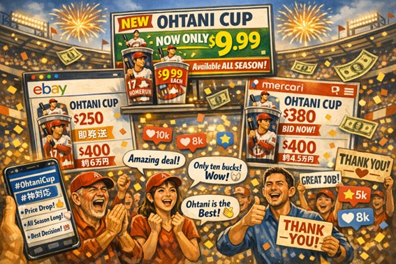 大谷翔平カップ炎上の背景には、高価格設定・物価高・オオタニ効果・SNS拡散力といった複数の要因が絡み合っていました。
